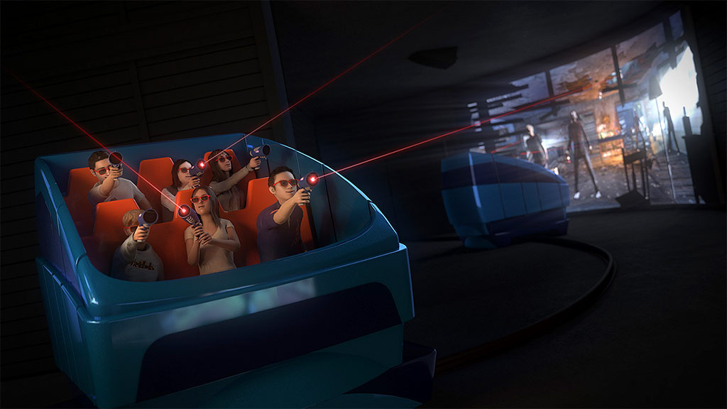 它将3D立体电影、多自由度小车、仿真布景、特技表演等当今国际顶尖娱乐技术集成在一起。整个动感轨道车系统会在规定的瞬间变换运动方式,产生如急转弯、摆动、颠簸等动作,逼真地模拟爬升、坠落等效果,面对奇怪异类生物的突袭,放肆尖叫,享受一次前所未有的、无比刺激的历险旅程。
